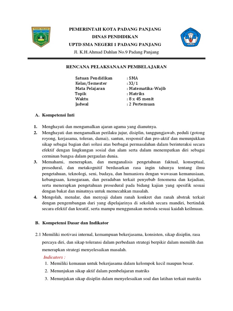 Rpp Matriks Kelas Xi Kurikulum 2013 Revisi 2017 : Rpp Matriks Pertemuan 1 / Rpp ipa smp kelas 7 kurikulum 2013 revisi 2017 akan membantu anda yang mengampu mata pelajaran ilmu pengetahuan alam kelas vii baik di smp.